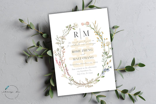 Spring Blossom Simple Wedding Invitation | English Only | 5x7 IN