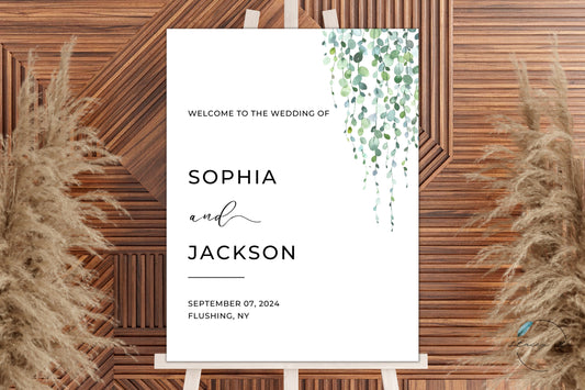 Simple String Greenery Wedding Welcome Sign | Portrait | 18x24 IN