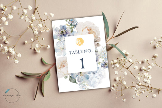 Soft Blue and Ivory Floral Table Number | 5x7 IN