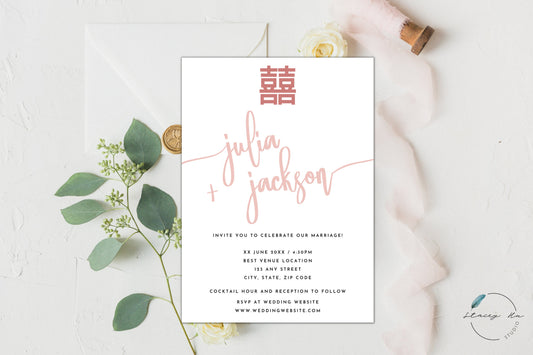 Simple Spring Bloom Wedding Invitation Set | Traditional Chinese English | 5x7 IN