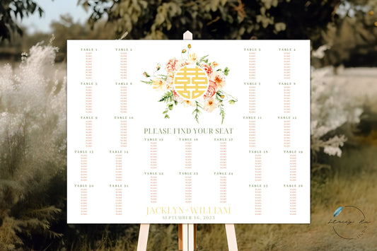 Sunny Field Floral Asian Wedding Seating Chart | Landscape | 18x24 IN
