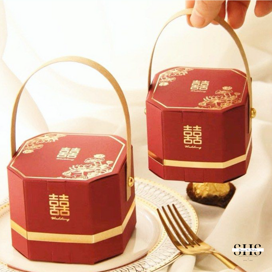 Regular price From $11.00 USDRegular priceUnit price perSale price From $11.00 USDBurgundy and Gold Asian Wedding Octagon Party Favor Boxes | Small