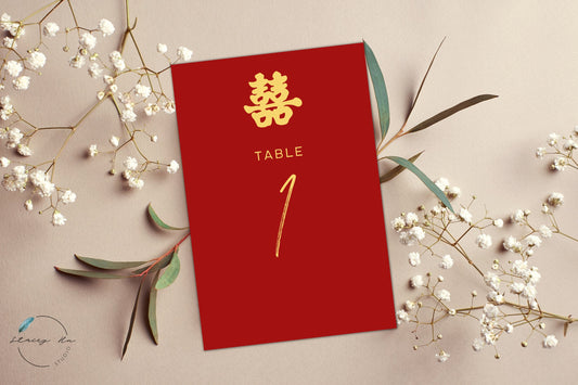 Red & Gold Simple Asian Wedding Table Number | 5x7 IN