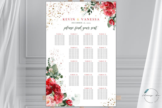 Red and Blush Greenery Wedding Seating Chart | Portrait | 24x36 IN