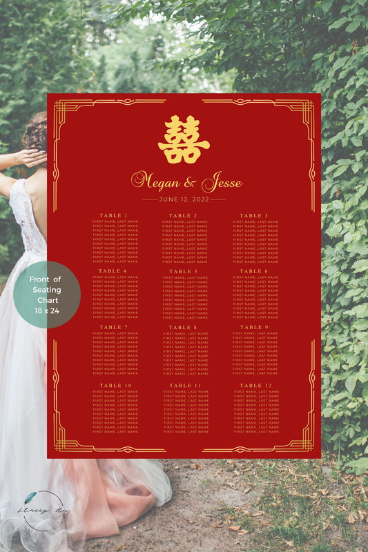 Red and Gold Asian Wedding Seating Chart | Portrait | 18x24 IN