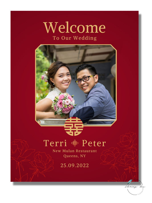 Red and Gold Asian Wedding Welcome Sign | Portrait | 18x24 IN