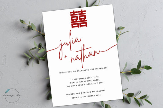 Simple Asian Wedding Invitation | English & Engagement Photo | 5x7 IN