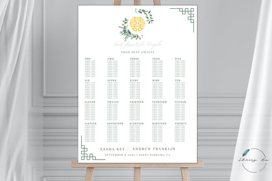 Simple Greenery Asian Wedding Seating Chart | Portrait | 18x24 IN