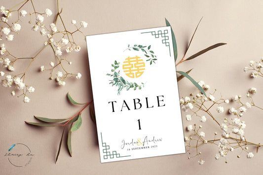 Simple Greenery Asian Wedding Table Number Seating Chart Cards | 4x6 IN