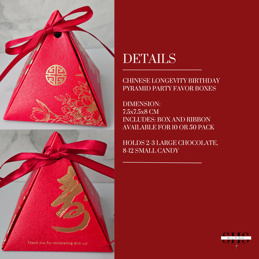 Chinese Longevity Birthday Pyramid Party Favor Boxes