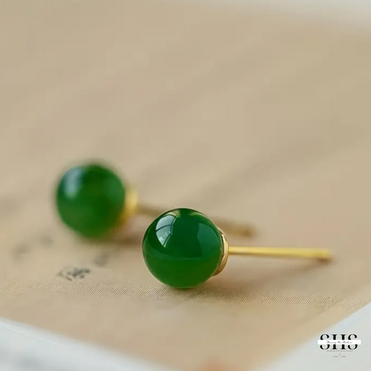 Green Jade 14K Gold Plated Stud Earrings | Personalized Bride Proposal Card | Gift Box Add-on
