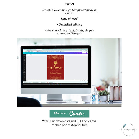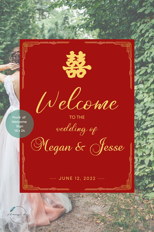 Red and Gold Asian Wedding Welcome Sign | Portrait | 18x24 IN