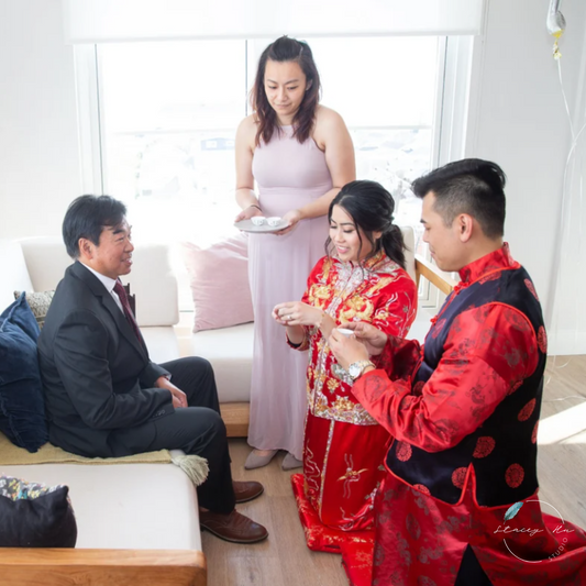 Red and Gold Tea Ceremony Wedding Invitation Set | Traditional Chinese & English | 5x7 IN